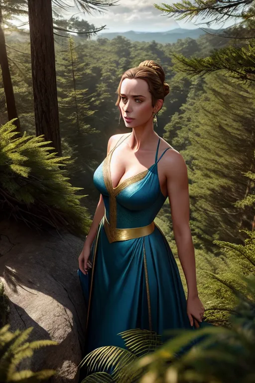 a concept art of,emily blunt,wearing empress dress,shooting from a high point,in the forest,big breasts,five slender fingers,ponytail,beautiful face,beauti... Created using Classic in SD1.5 Text2Image mode. View and share this AI-generated artwork.