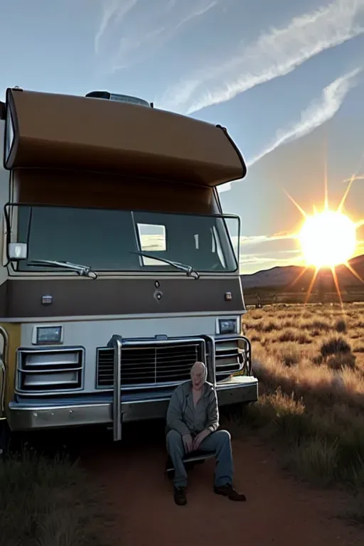 A photo of the RV from breaking bad in a field with the sun ... - AI Art by 4C Data | Dopamine Girl