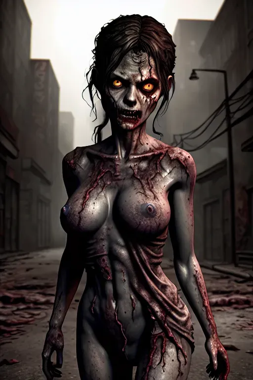 Walking Dead Style a 3d render of a zombie girl naked portra... - AI Art by Eden Mr | Dopamine Girl