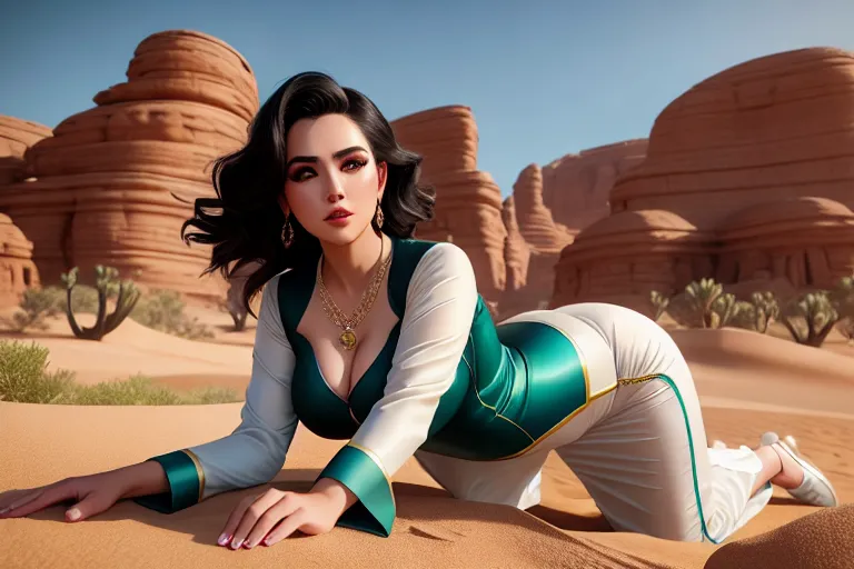a photograph of,bella poarch,wearing ao dai,all-fours,in the desert,big breasts,five fingers per hand,fishtail hair,charming face,beautiful lips,green eyes... Created using Classic in SD1.5 Text2Image mode. View and share this AI-generated artwork.