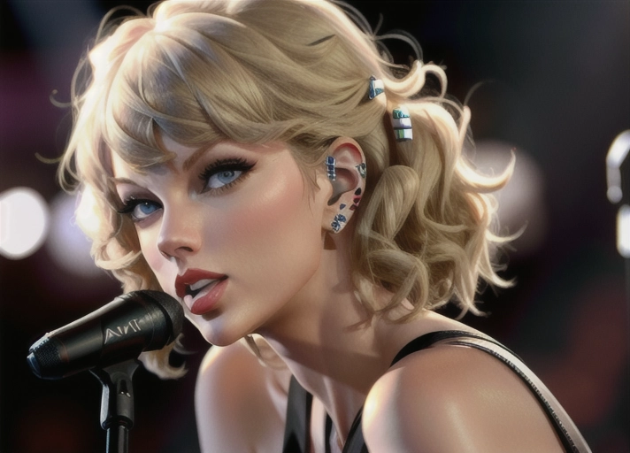Taylor swift wearing ear plugs - AI Art by GOLD TENTACRUEL | Dopamine Girl
